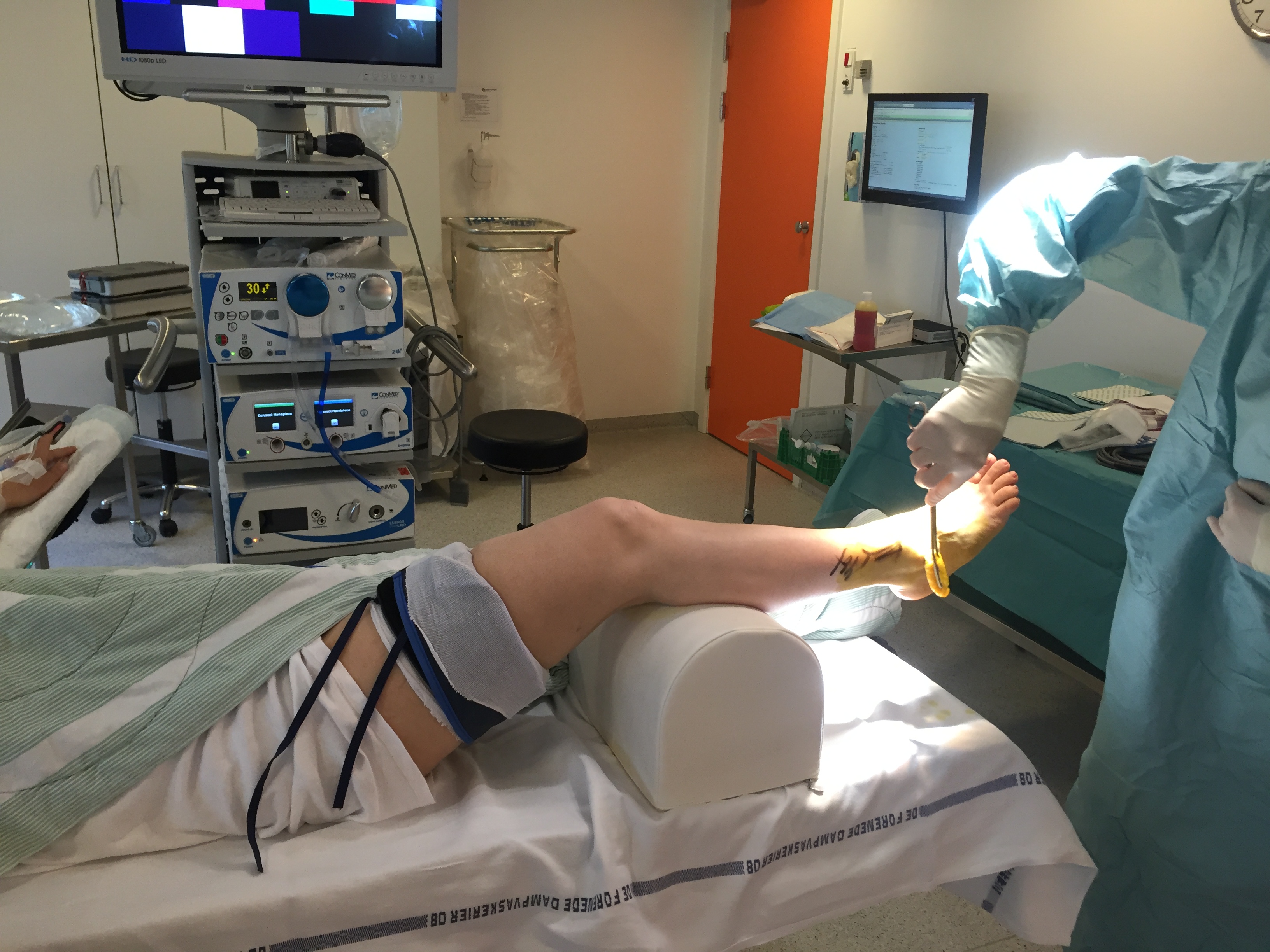 Jeg var en kende nervøs efter at have hørt lidt skrækhistorier, men det var ok. Mest af alt var jeg spændt på om der nu også lå et stykke løs brusk (som vi havde mistanke om) og var den som gav mig de mange pludselige og uforudsigelige smerter, som hvis det nu og da satte sig fast.