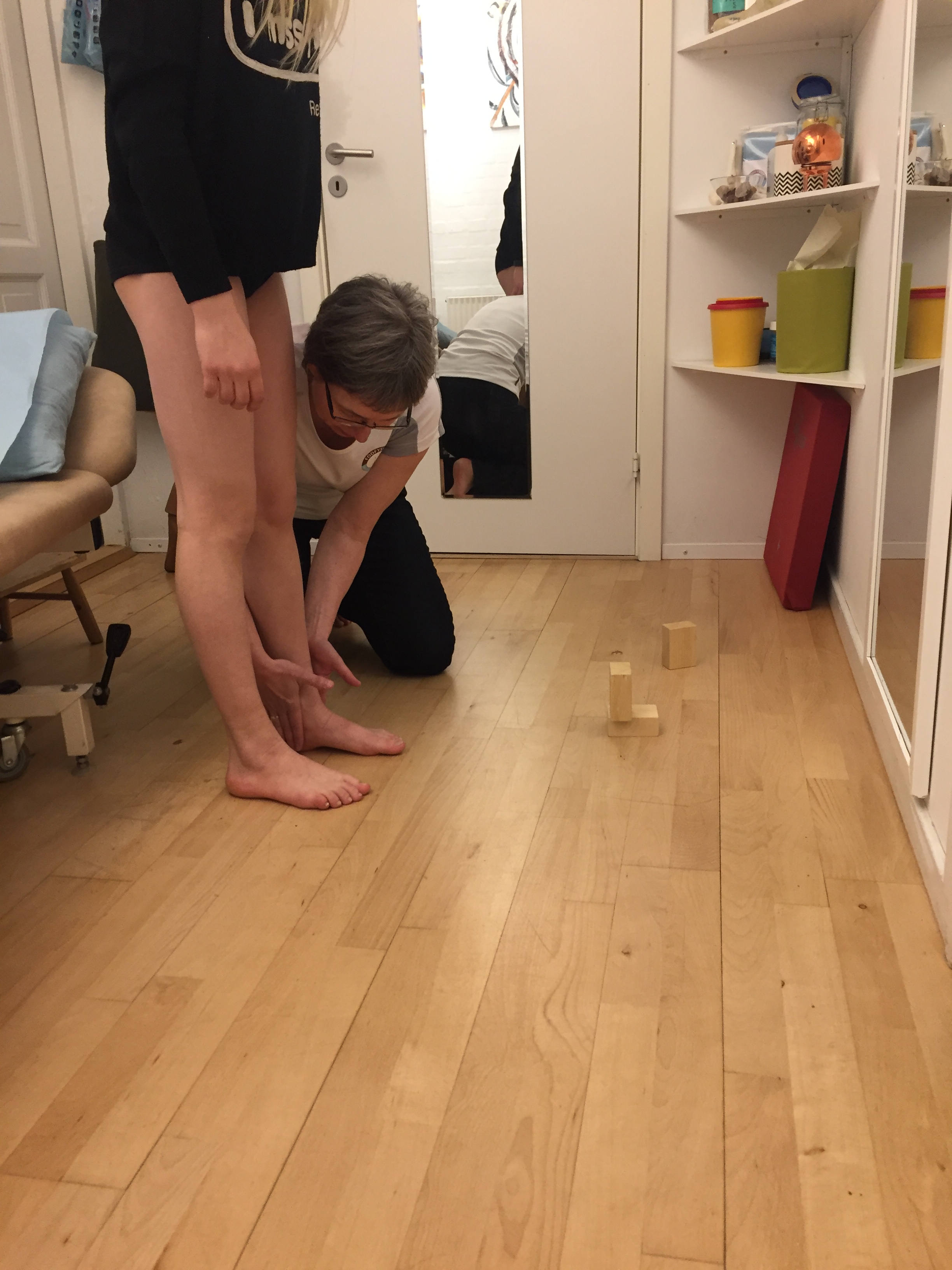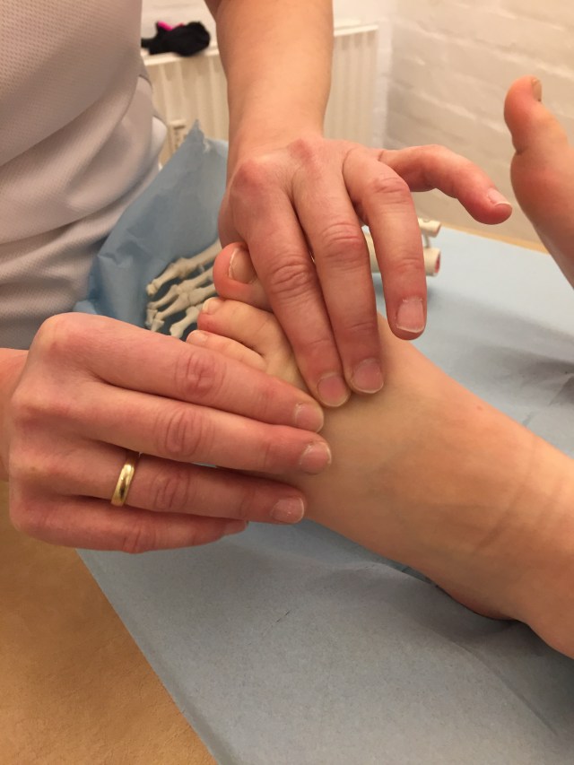 Marianne kunne konstatere at Andrea´s fodled var låst og i en sådan grad at denne fastlåsning gjorde hende platfodet og forvoldte smerterne. Ved at mobilisere leddene ganske blidt og i lang tid, fik hun låst op for dem!