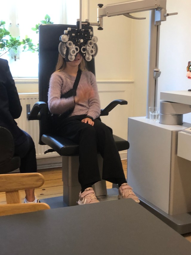 Mange undersøgelser senere – – fandt de ingenting og vi måtte acceptere at ja, hun så dårligt også MED briller. Hendes syn var ca. 70%, hun havde en lille bygningsfejl og var en smule farveblind. Faktisk lå hun på grænsen til at må få kørekort senere i livet – så dårligt så hun!