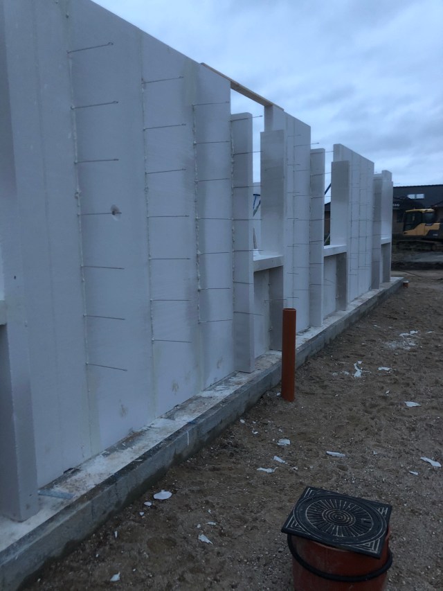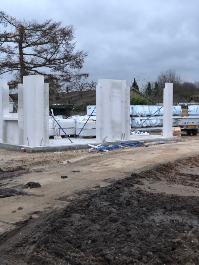 Fredag var de dog sluttet tidligt fordi det stormede kraftigt – og skæve vægge gider vi IKKE have! 😉