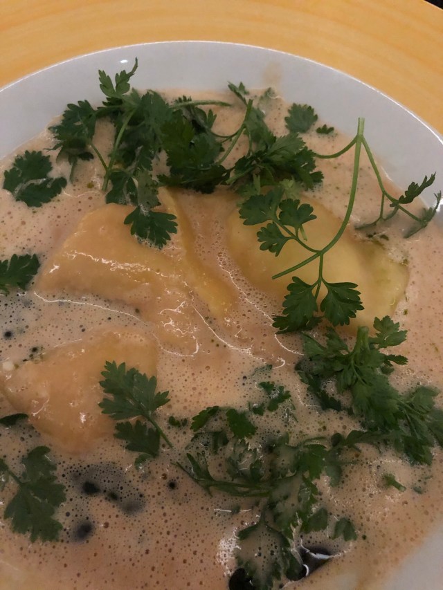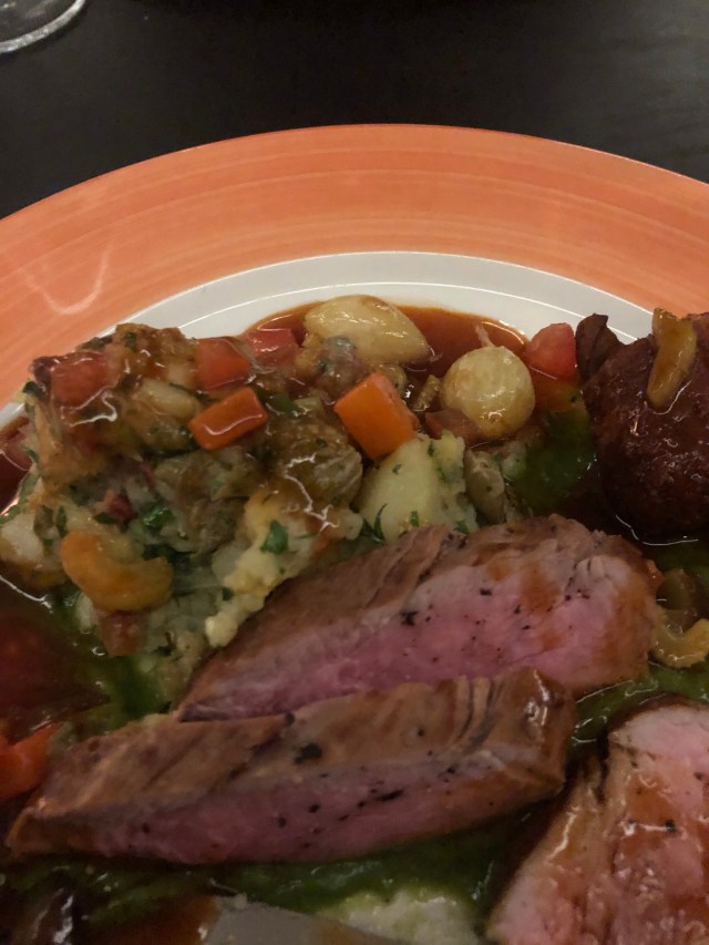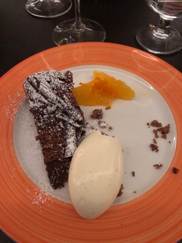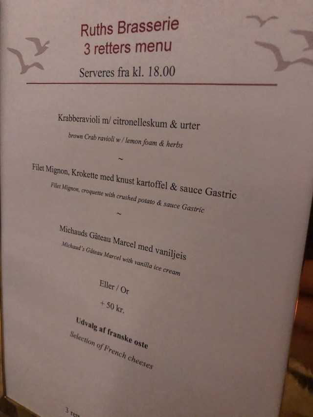 Middagen var lækker – en 3-retters forudbestemt menu og så købte man selv drikkevarer til.