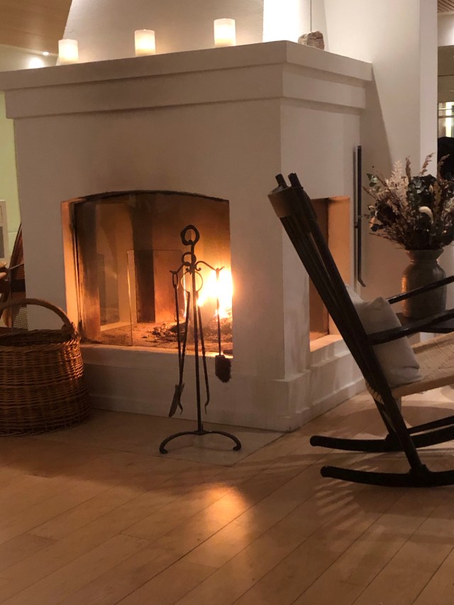 Efter middagen nød vi en drink i baren med ild i pejsen og klaverspil til inden det var sengetid! Lørdag morgen var der arrangeret morgendyp i havet kl. 8 – det måtte vi lige sove på og overveje! 😉