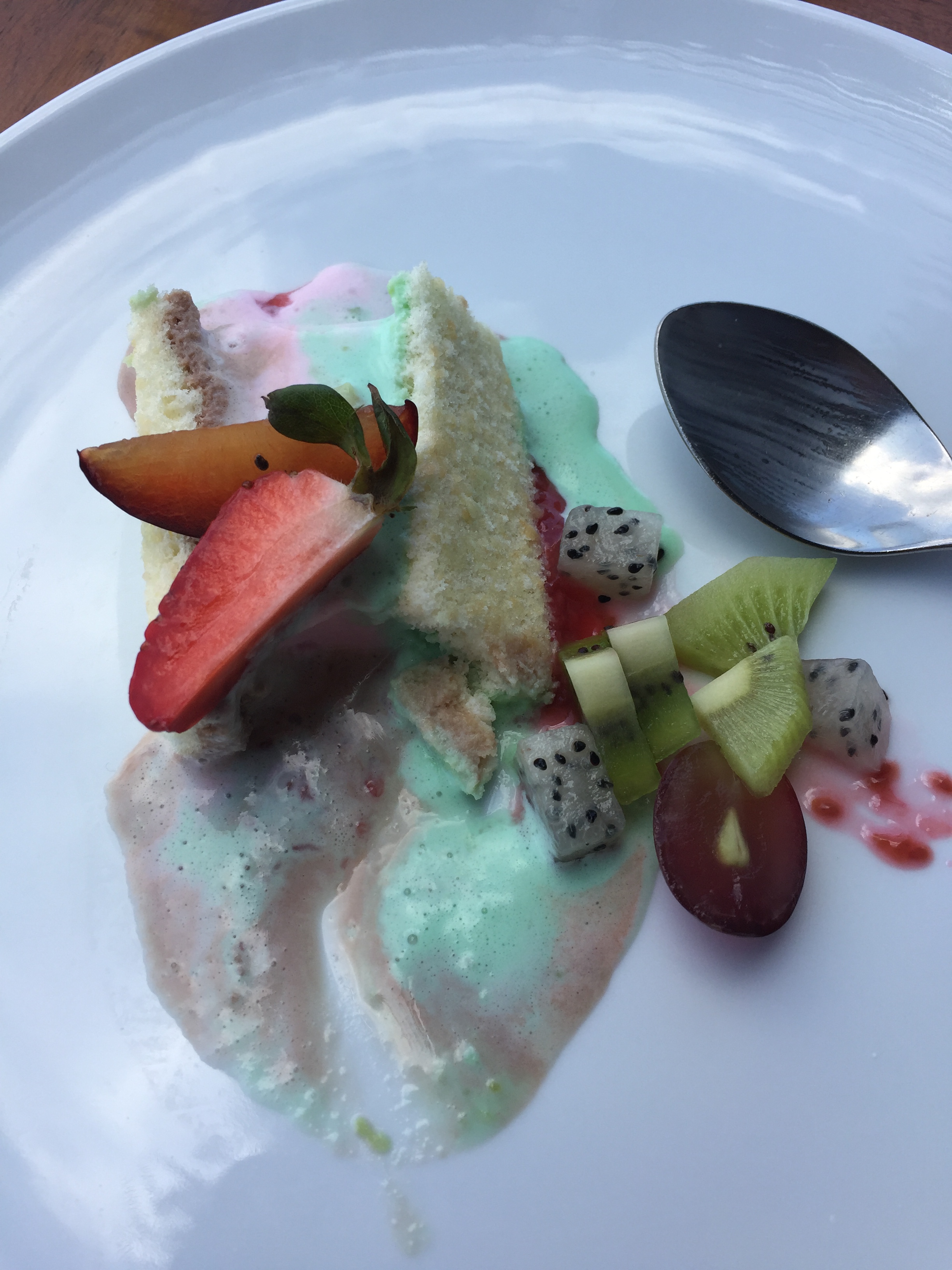 Den sidste morgenmad fik vi, igen, serveret på vores terrasse, og vi kunne nyde den smukke solopgang.