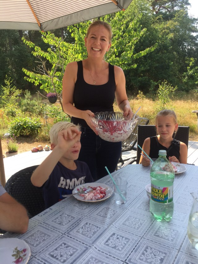 Og det gjorde der selvfølgelig ikke. Vi kom sikkert frem, og spejdede – forgæves – efter familien Kaalund. Vi undrede os jo lidt, for vi havde jo aftalt at vi ville sejle kl. 10 og ca. være der kl. 11. Men ingen af os havde taget højde for kuriositeten med den extra time man havde valgt at lægge til på vores ø – det havde de nemlig ikke på Martin og Tines ø, så ved ankomst hos dem var klokken kun 10 og for os 11!! Det kunne vi jo kun grine af, men det er da lidt spøjst, at man sådan kan lægge til eller fra efter for-godt-befindende!