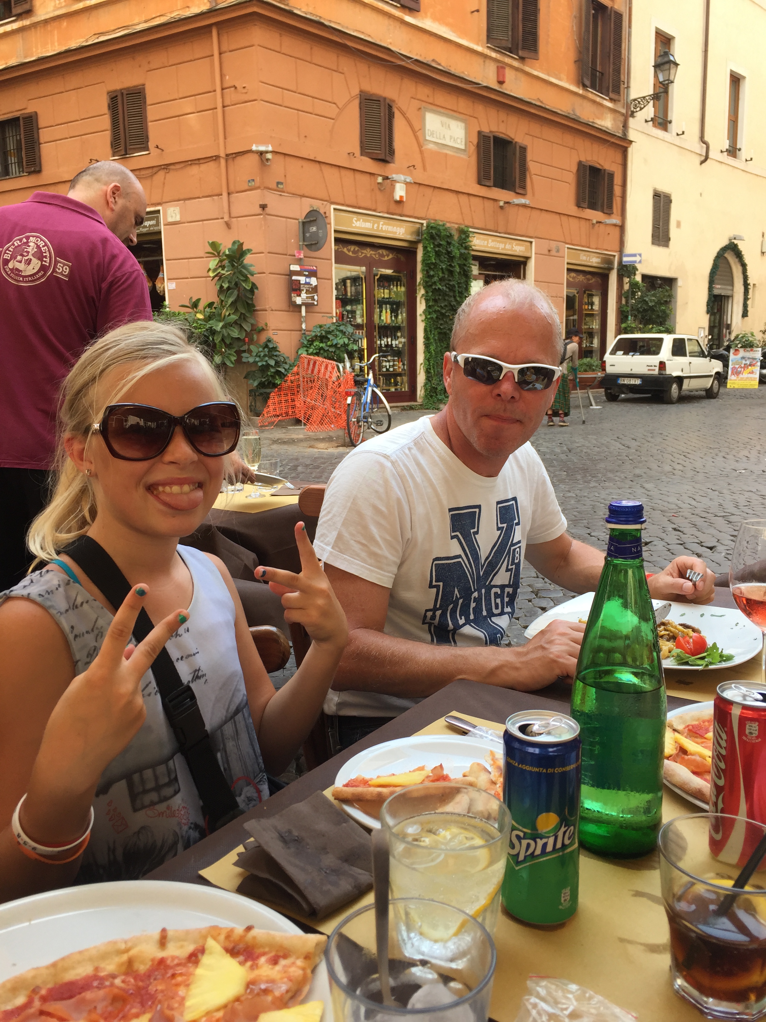 Vi gik ud for at spise på en anbefalet Italiensk restaurant som lå i nærheden. Andrea havde voldsom ondt i det ene øre efter flyveturen, så det endte med at blive en meget kort middag, og jeg gik hjem med ungerne før Ole. Han ventede nemlig på at Marta´s far kom forbi restauranten som vi havde aftalt. Da han var kommet tog de hjem til os og vi fik en kop kaffe og en sludder inden det var sengetid.